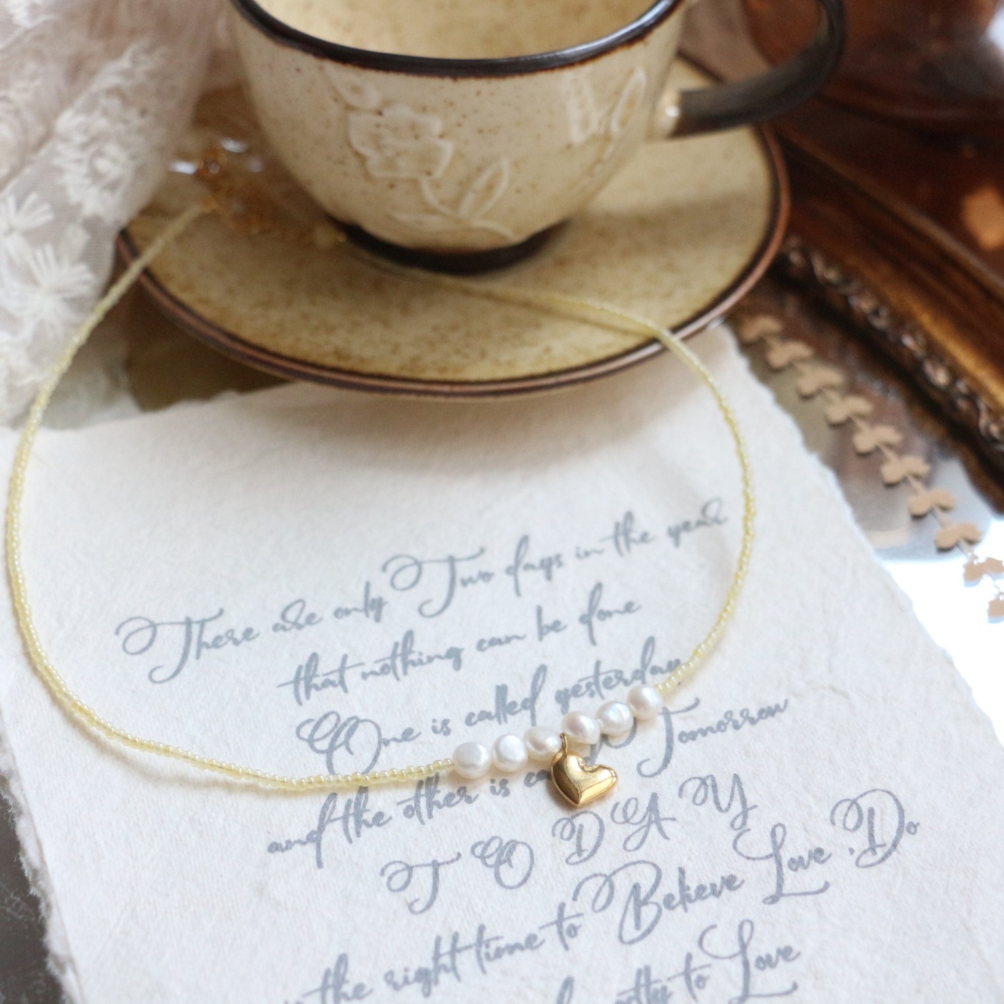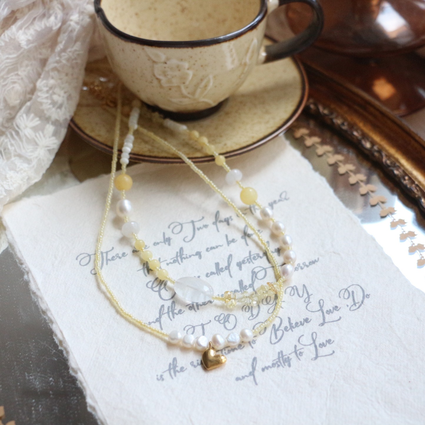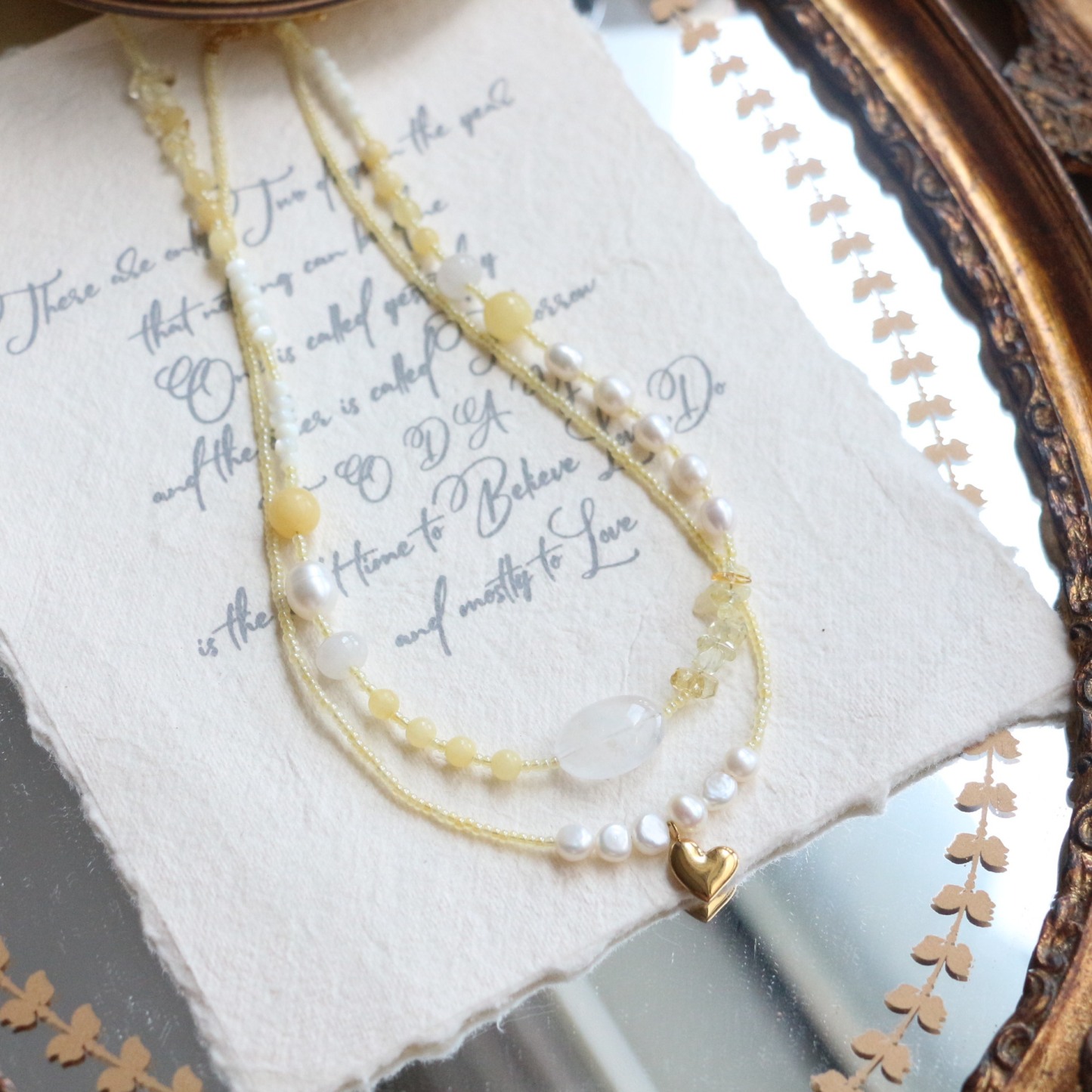 Gold Rutilated Pearl Long Necklace Beige Layering Sweater Chain Women