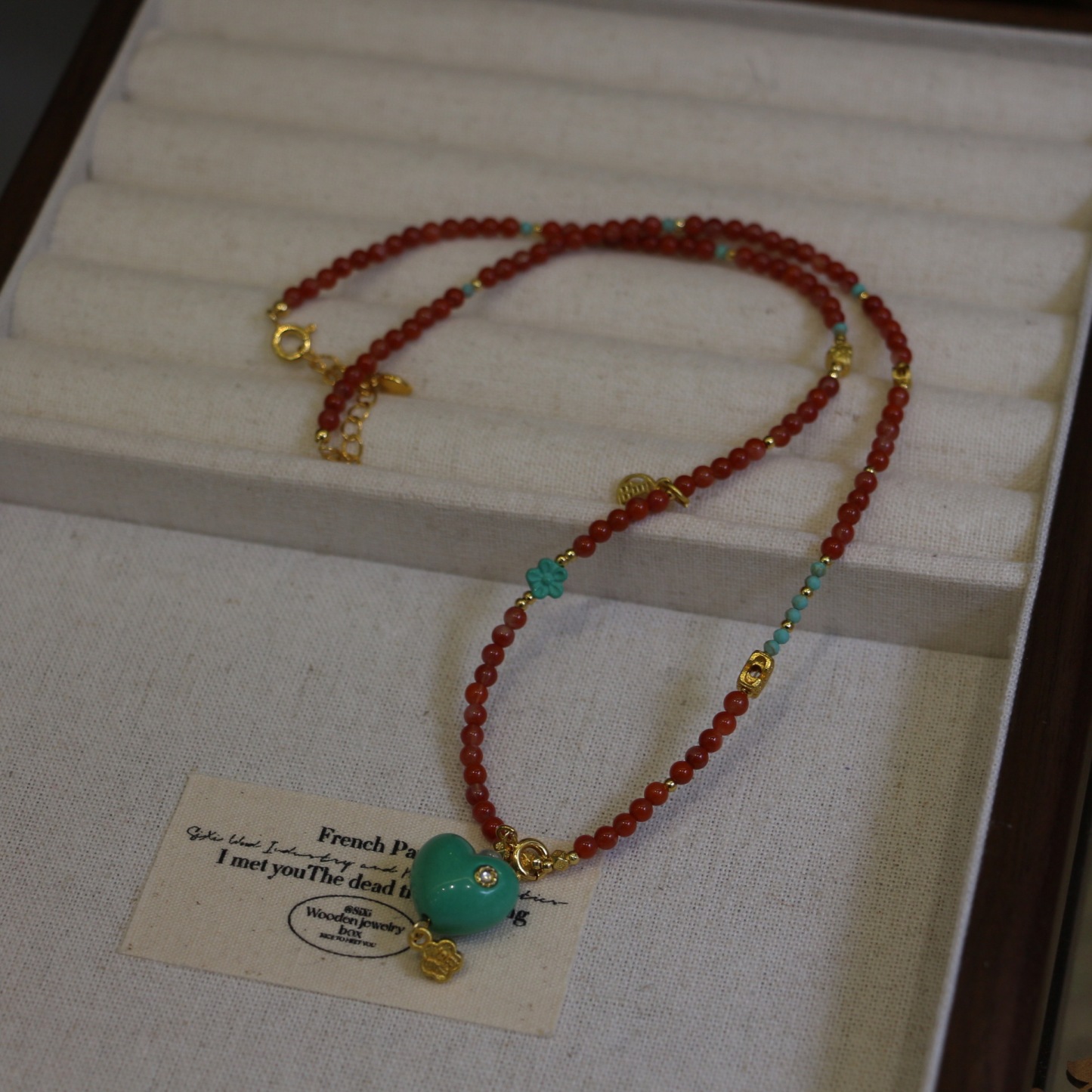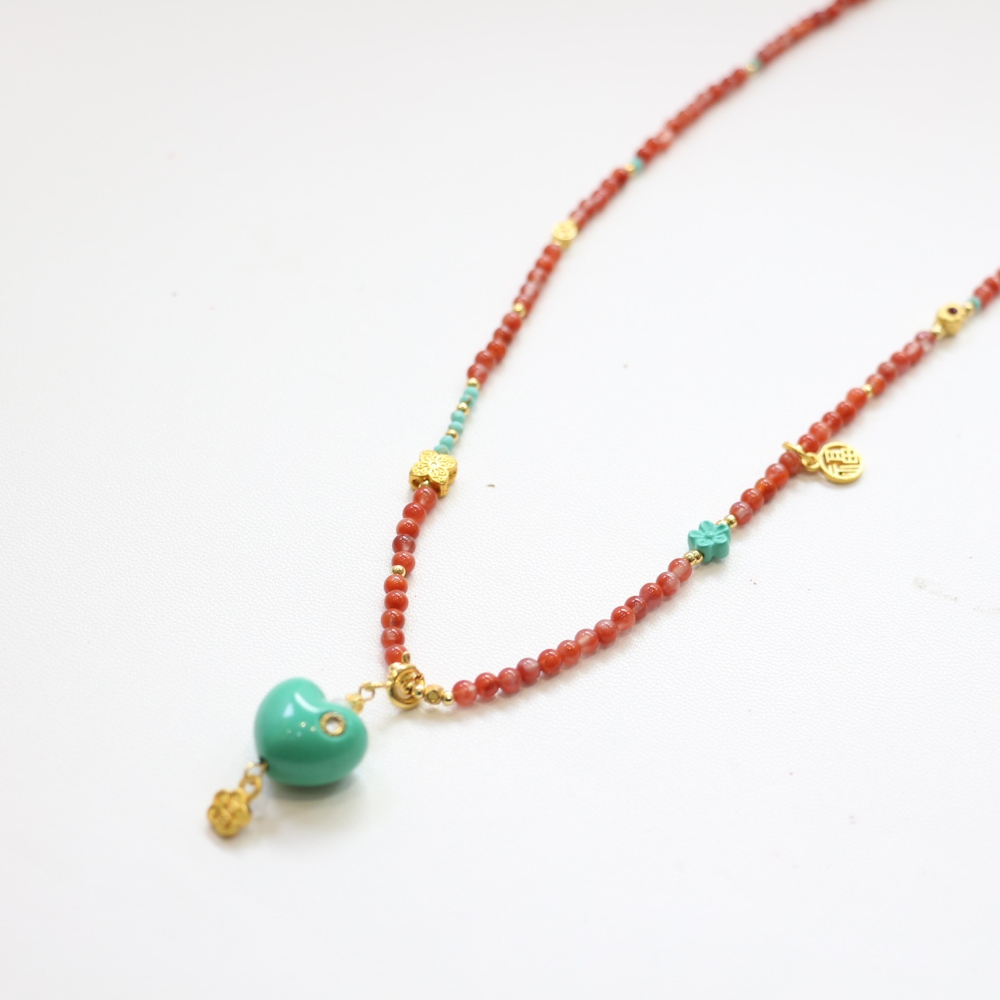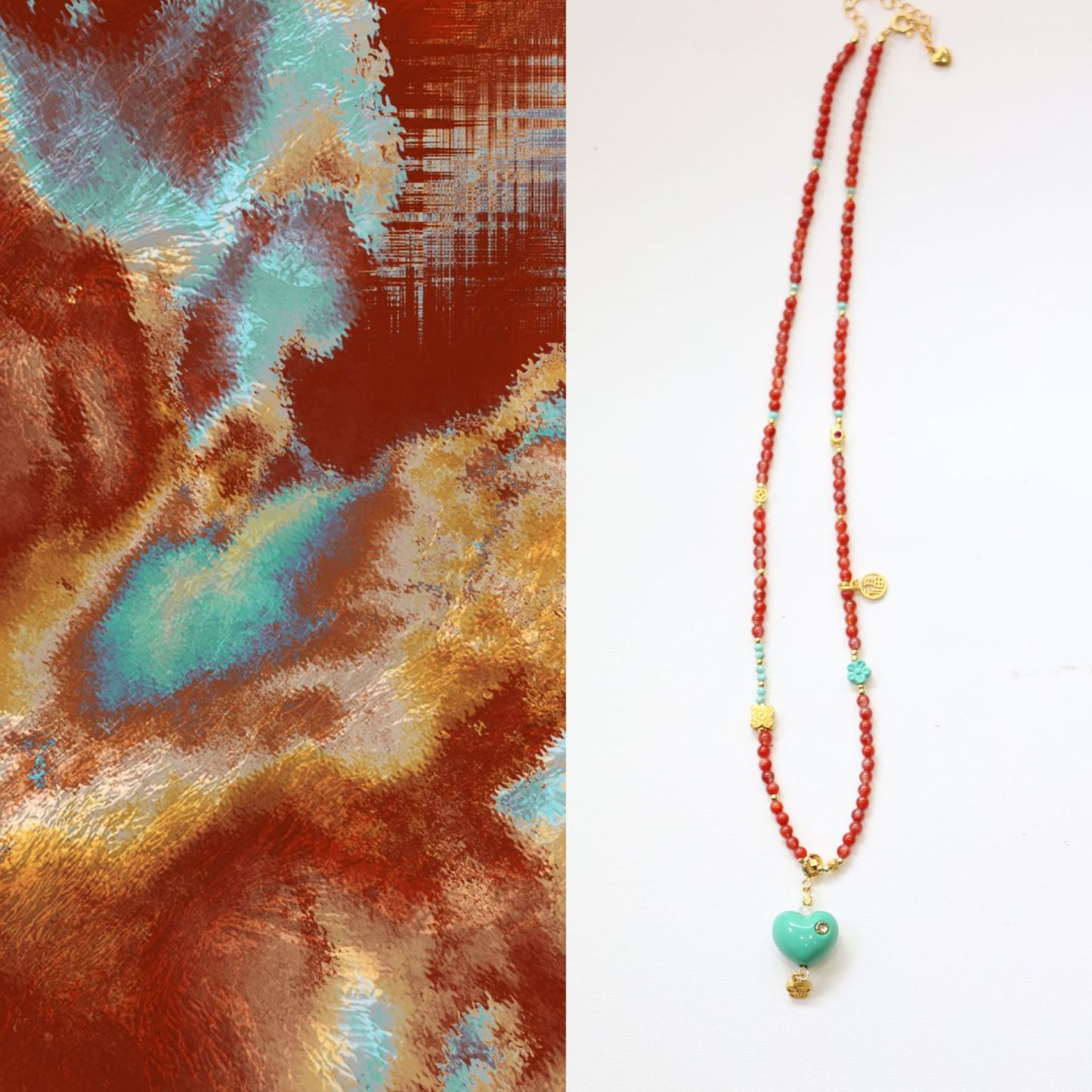 Red Howlite Turquoise Long Necklace Red Green Layering Choker